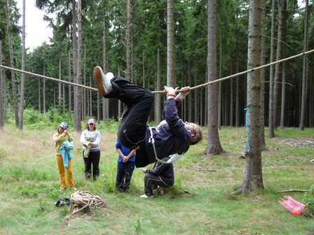 A v neposlední řadě bylo přelézání překážky po vodorovném laně pod dohledem Aleše...